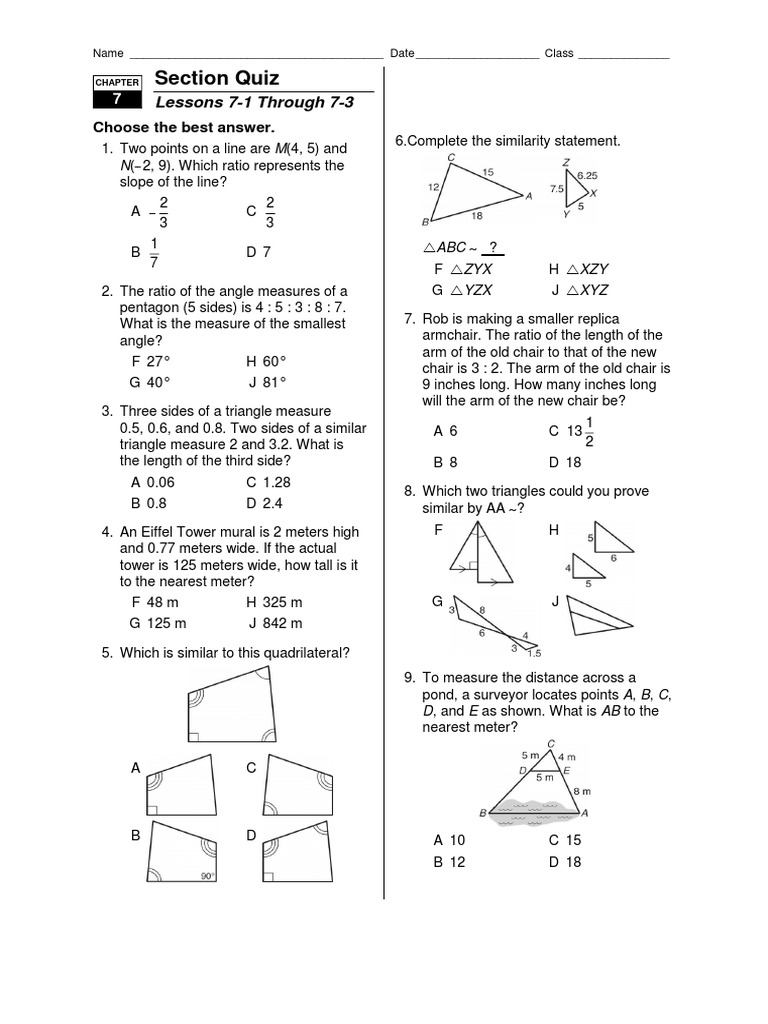 Some of the worksheets for this concept are geometry chapter 7 test, geometry chapter 7 test answers, geometry unit 6 test answers, geometry quiz key, chapter resources chapter 7, math essentials, geometry unit 1 workbook, teacher guide weekly lesson schedule daily schedule tests 7-1: lesson quiz geometry. Is your kid a nate seltzer fan?