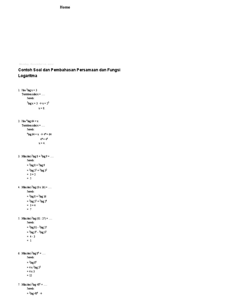 Materi logaritma sma kelas 10 lengkap dengan contoh soal dan pembahasan. Yang mana pada pertemuan sebelumnya juga kita telah membahas materi tentang limas segitiga baiklah untuk lebih lengkapnya sobat bisa simak ulasannya dibawah ini. Soal juga telah tersedia dalam format pdf yang dapat diunduh. Rumuscoid setelah sebelumnya kita membahas tentang rumus limit trigonometri kali. Logaritma digunakan untuk menentukan besar pangkat dari suatu bilangan pokok.